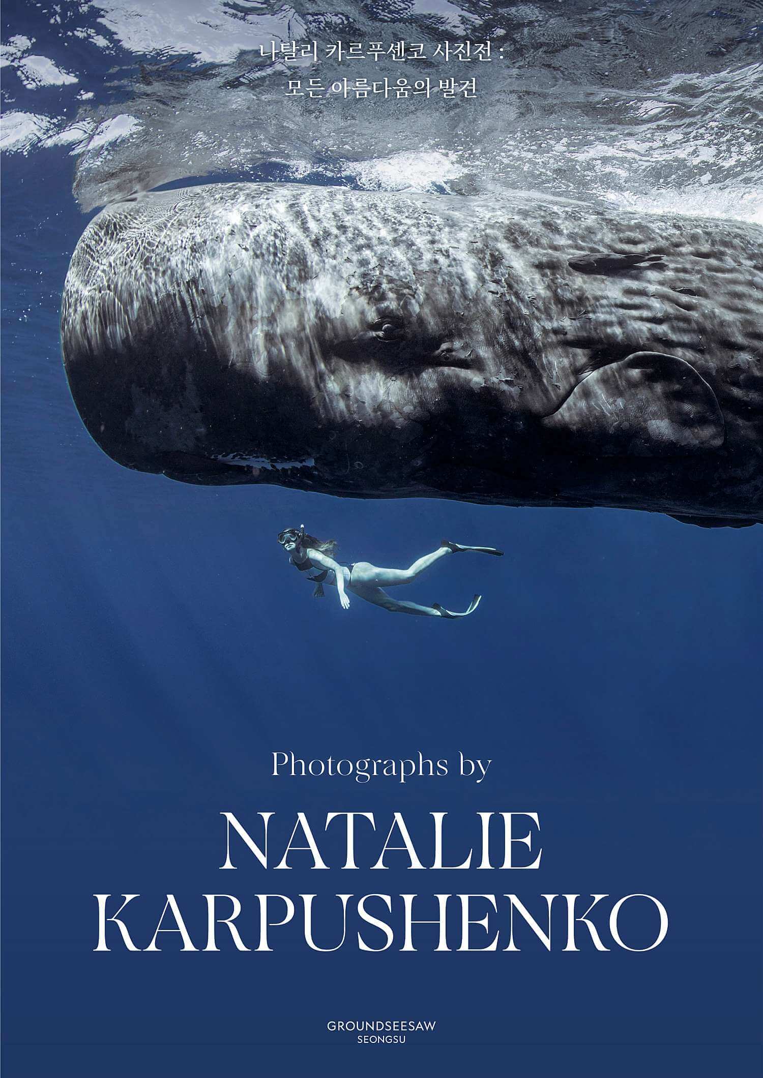 나탈리 카르푸셴코 : 모든 아름다움의 발견은 인도네시아, 통가, 모리셔스, 남아프리카 공화국 등 그녀가 세계 각지의 섬과 바다를 누비며 기록한 사진과 영상을 국내 최초로 선보인다. 깊은 바닷속에서 출발해 원시의 숲으로 깊숙이 들어가는 여정을 따라 Ocean Breath, Wate Drop, Angel, Rising Woman, Wild Breath, NATALIE 6개의 섹션으로 구성되어 있다. 이번 전시는 2022년 12월 23일부터 2023년 5월 7일까지 서울시 성동구 아차산로 17길 49 생각공장 지하 1층에 위치한 그라운드시소 성수에서 개최된다. 매월 첫번째 월요일이 휴관일이며 공휴일에도 정상 운영된다. 관람시간은 오전 10시부터 오후 7시까지이며 입장 및 매표소 마감은 오후 6시이다. 티켓가격은 성인/아동청소년영유아 공통 1인 1만 5천원이다. 이번 전시의 오디오 가이드는 #VIBE 앱을 통해 무료로 들을 수 있다. 보이스 앰버서더 가수 윤하가 전하는 흥미진진한 작품 스토리를 들을 수 있다. 아트샵에서 주차권 구매가 가능하고 1시간에 4천원이다.