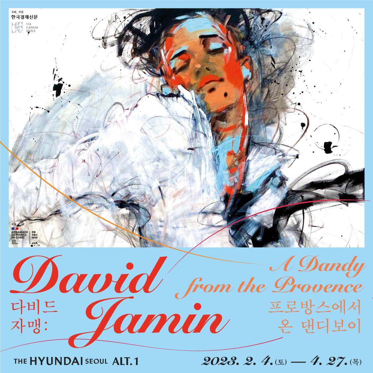 2022년 미공개 신작 100여 점을 포함해 아크릴 원화 130여 점을 만날 수 있는 다비드 자맹, 프로방스에서 온 댄디보이 전시는 2023년 2월 4일부터 4월 27일까지 더현대서울에서 개최된다. 휴관일은 더현대서울 휴점일이며 별도 공지한다. 관람시간은 월요일부터 목요일은 오전 10시 30분부터 오후 8시이며 오후 7시에 입장마감한다. 금요일부터 일요일은 오전 10시30분 부터 오후 8시 30분이며 오후 7시 30분에 입장 마감한다. 티켓 가격은 성인 1만 8천원, 청소년 1만 5천원, 어린이 1만 2천원, 특별가 할인대상 1만원, 36개월 미만 유아는 무료이다. 경로본인, 국자유공자 및 유족 본인, 장애인, 의상자 및 유족 본인은 특별가 할인 대상이다. 할인증빙자료를 지참해 할인을 받을 수 있다. <합스부르크 600년, 매혹의 걸작들> 실물 티켓을 가져가면 티켓 소지자에 한해 20% 할인받을 수 있다. 인터파크 티켓에서 예매 시 평일 한정 할인 10% 예매가 가능하다. 얼리버드 티켓은 3월 31일까지 사용가능하다. 전시 주요 작품 20여 점에 대한 오디오 가이드 해설은 4,400원이며 앱에서 결제해야하고 이어폰은 개별 지참해야 한다. 전시 문의는 '한경문화예술' 카카오 채널로 하면 된다. 더현대서울에 주차할 경우, '더현대 서울 ALT.1' 카카오톡 채널 친구 대상으로 매표소에서 차량번호 등록 시 2시간 무료, 이후 10분당 추가요금 2천원이라고 한다.